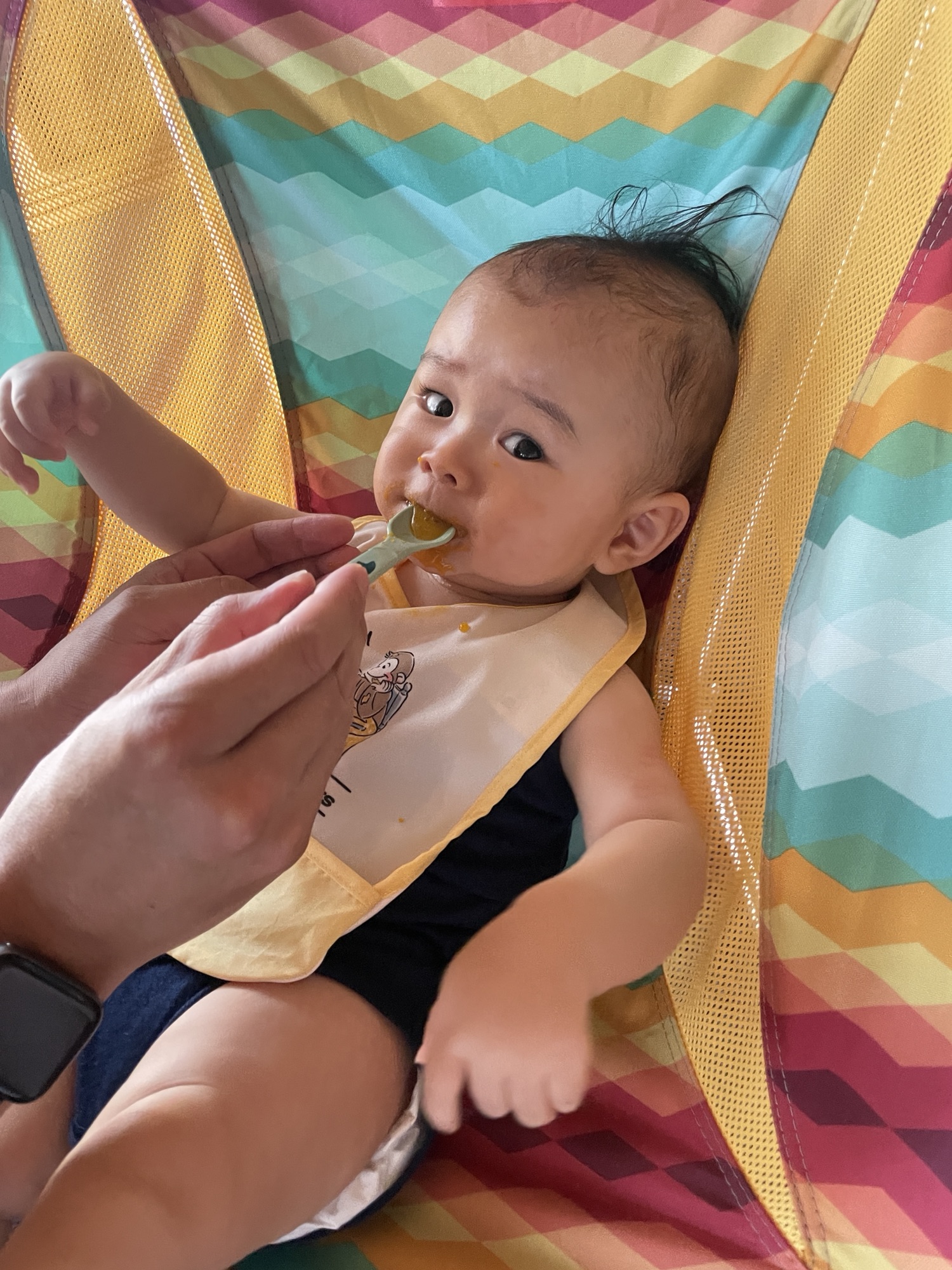 それから、市役所の栄養士さんや、小児科の先生とも相談をして2週間ほど間を空けて離乳食を再開しました。どうやら最初の食事にびっくりしただけで、お米アレルギーではなかったようです。ですが、その後もちょこちょこ湿疹が出てなかなか離乳食は思うように進まず。今では食べる量が次第に増えてきましたが、まだまだ悪戦苦闘しています。なんでも一歩ずつですね。